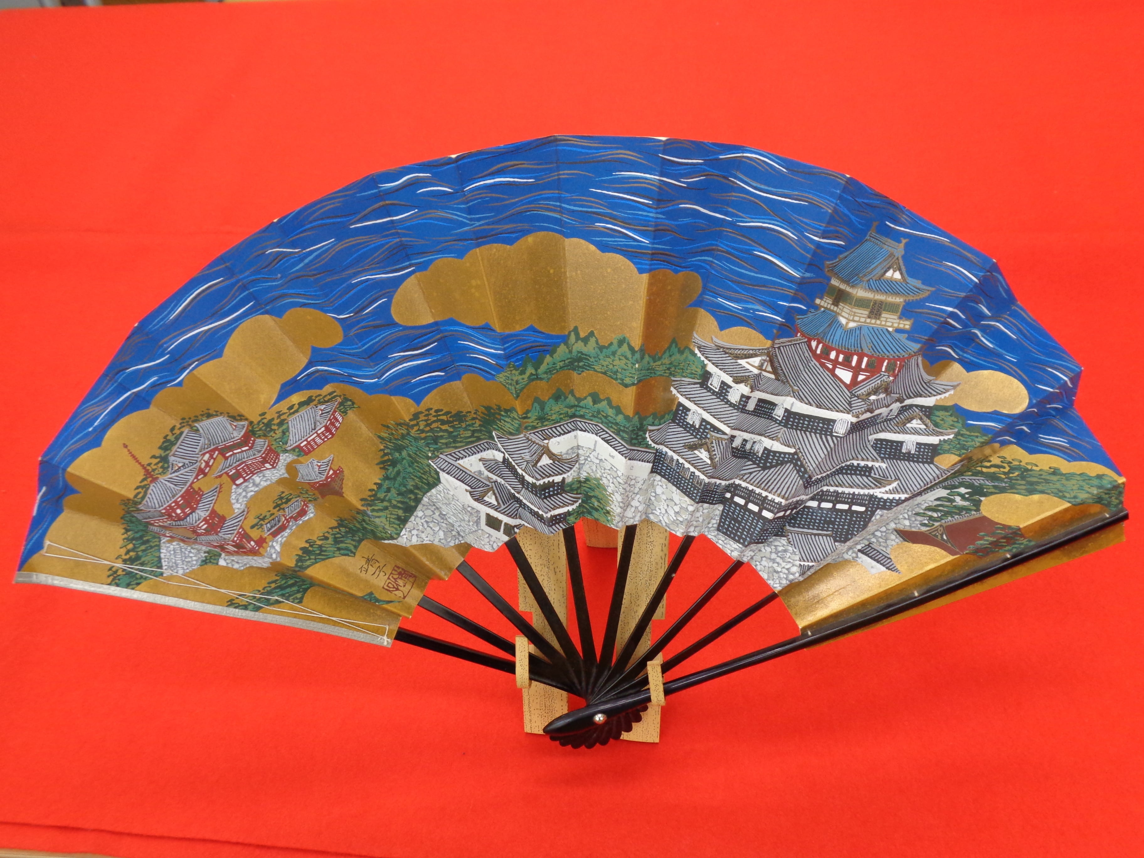 扇子の製造は300年以上の伝統のある高島扇子。高島扇子は、扇骨の産地滋賀県安曇川の特産品です。